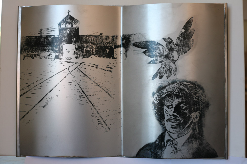 Mit einem Buchobjekt (Metall) anläßlich der Erinnerung an 80 Jahre Bücherverbrennung und Flucht von verfolgten Deutschen ins Ausland während des Faschismus soll im Gegensatz daran erinnert werden, wie wichtig AUCH FÜR DEUTSCHE eine Migrationsmöglichkeit war. Dieses große Installationsprojekt wird ständig mit neuen Buchversionen neu gestaltet